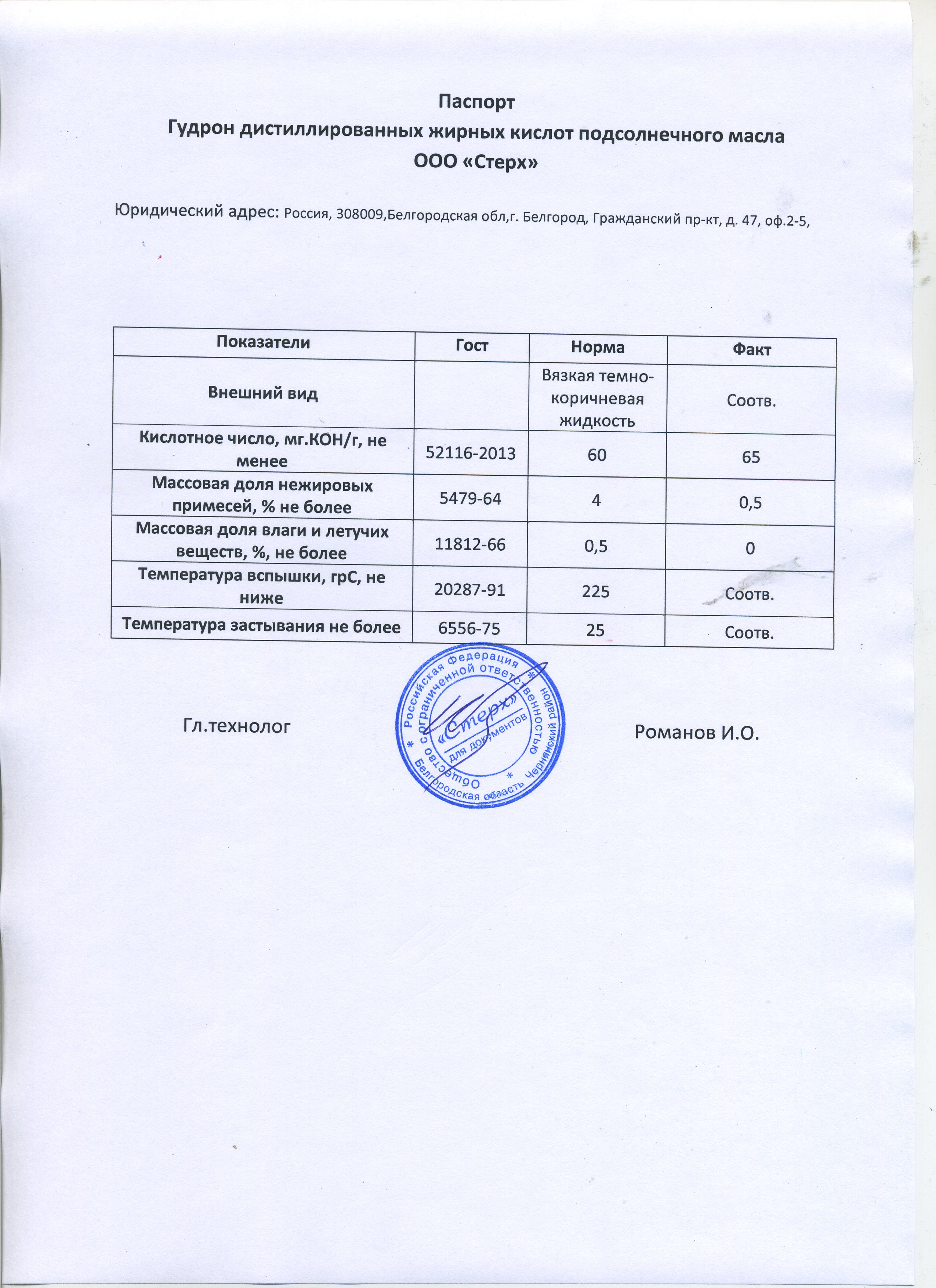 Вторичный гудрон представляет собой смесь гудронов, полученных при дистилляции жирных кислот, выделенных после расщепления соапстоков растительных масел.