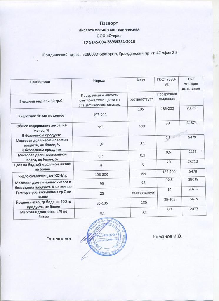 Особое внимание следует обратить на гордость наших технологов - цвет олеиновой кислоты.